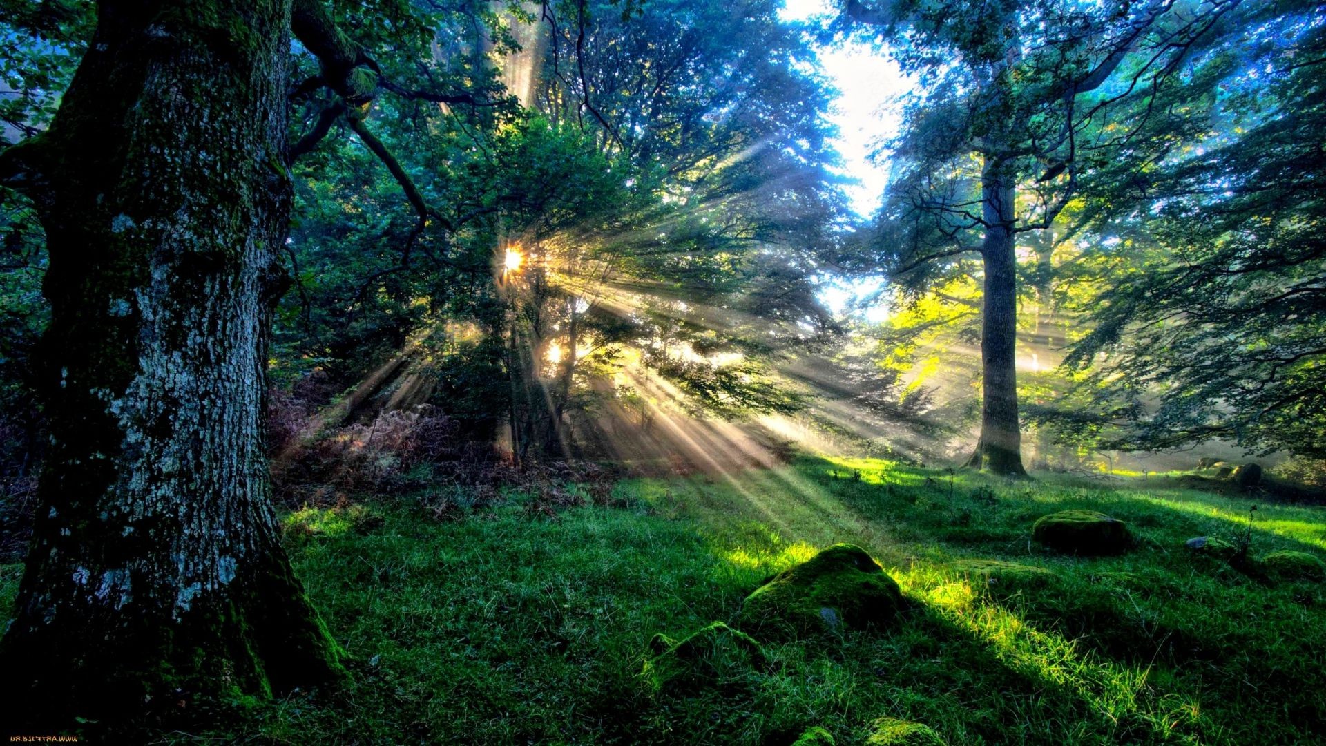 Raggi di sole attraverso il fogliame