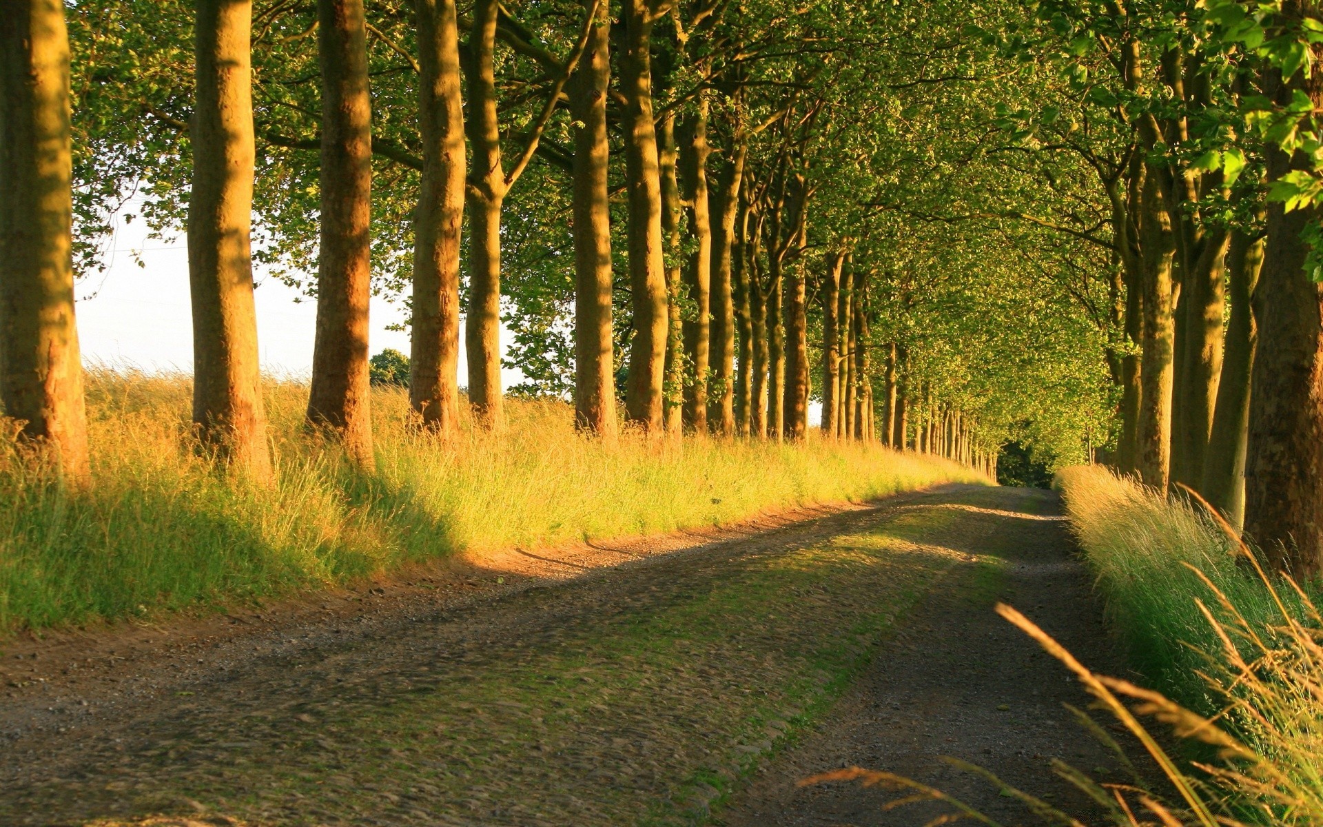 Strada nella foresta fredda invernale tra gli alberi di Natale