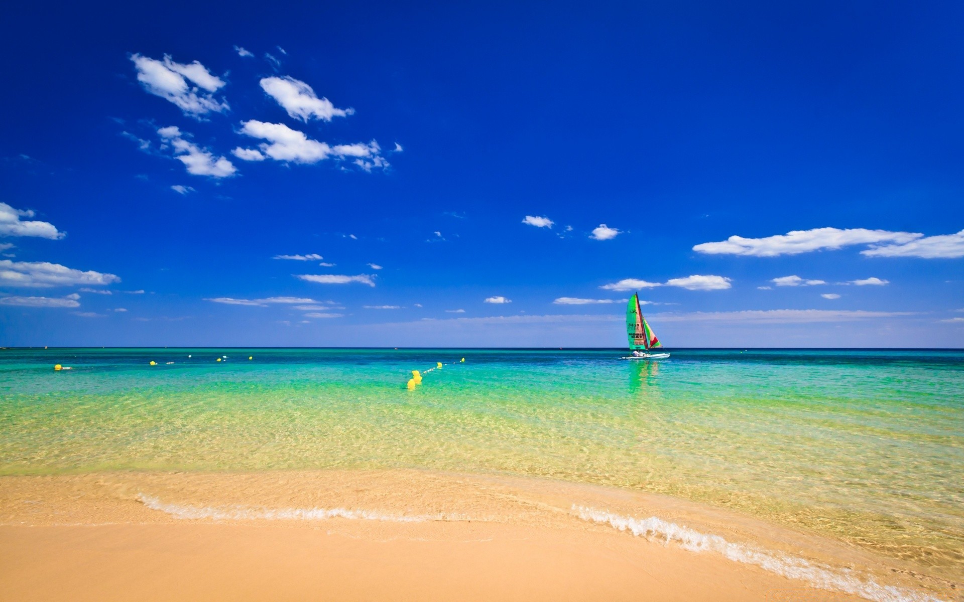 Paesaggio estivo: mare, sabbia, nuvole