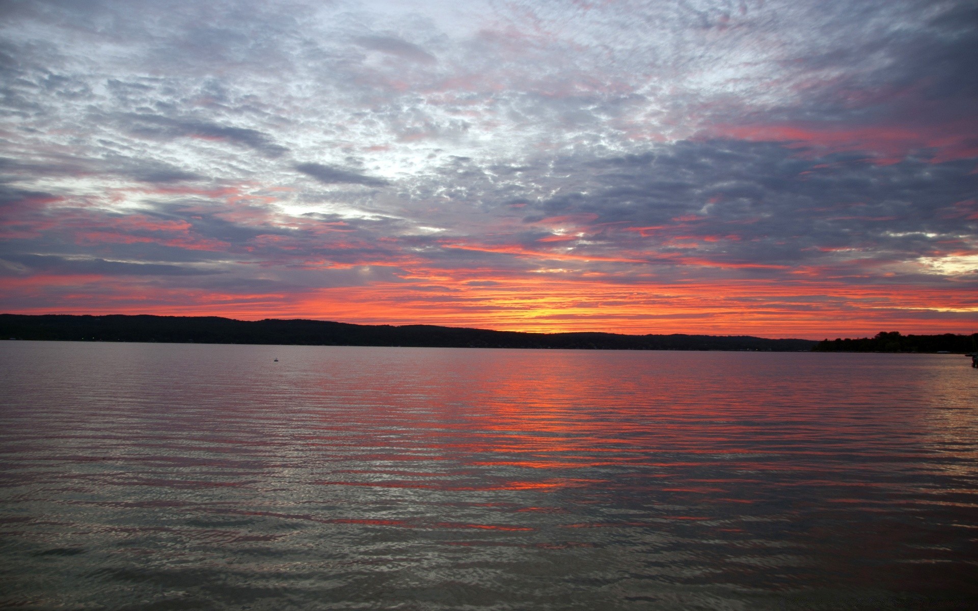Il tramonto copre il lago