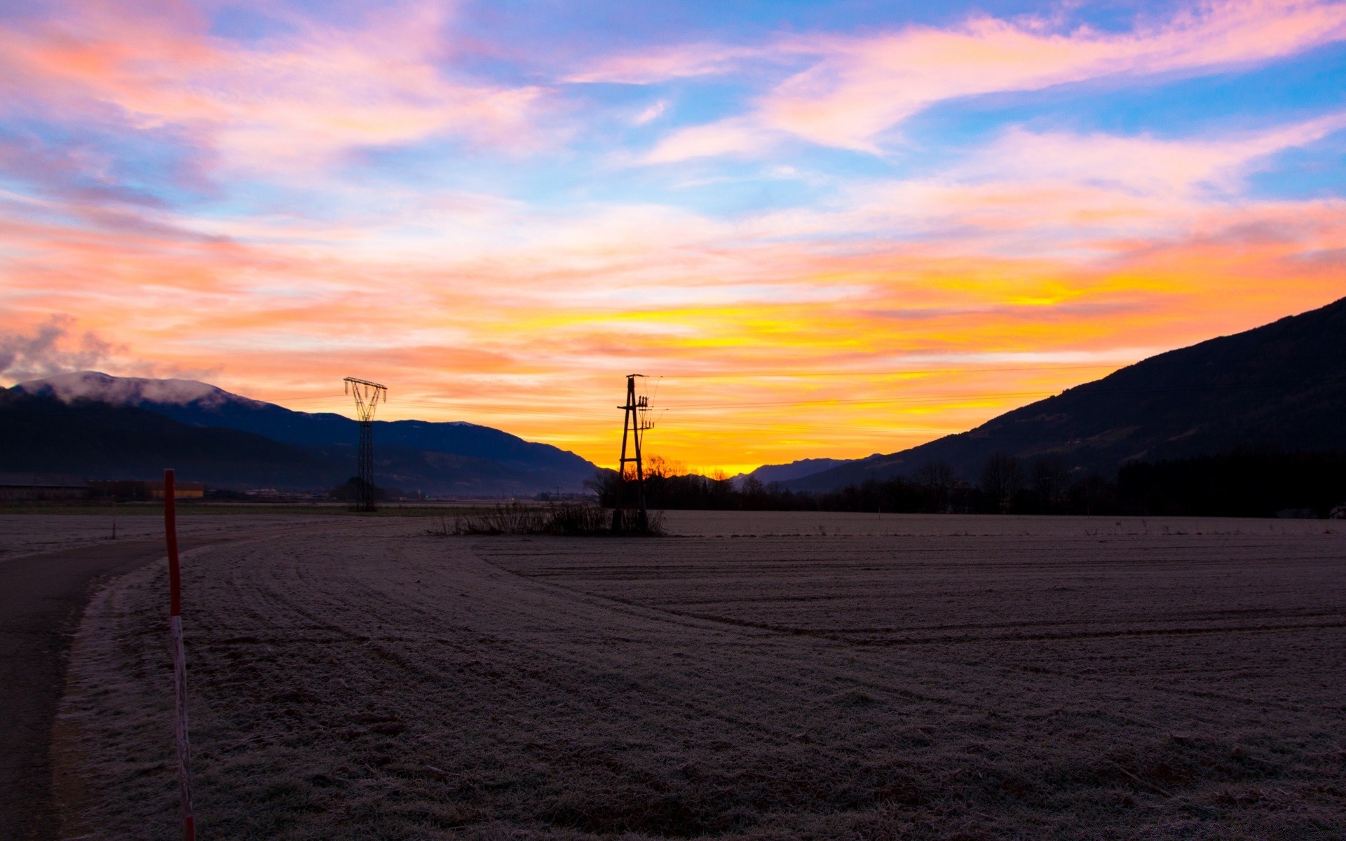 Paesaggio del tramonto serale sullo sfondo della foresta