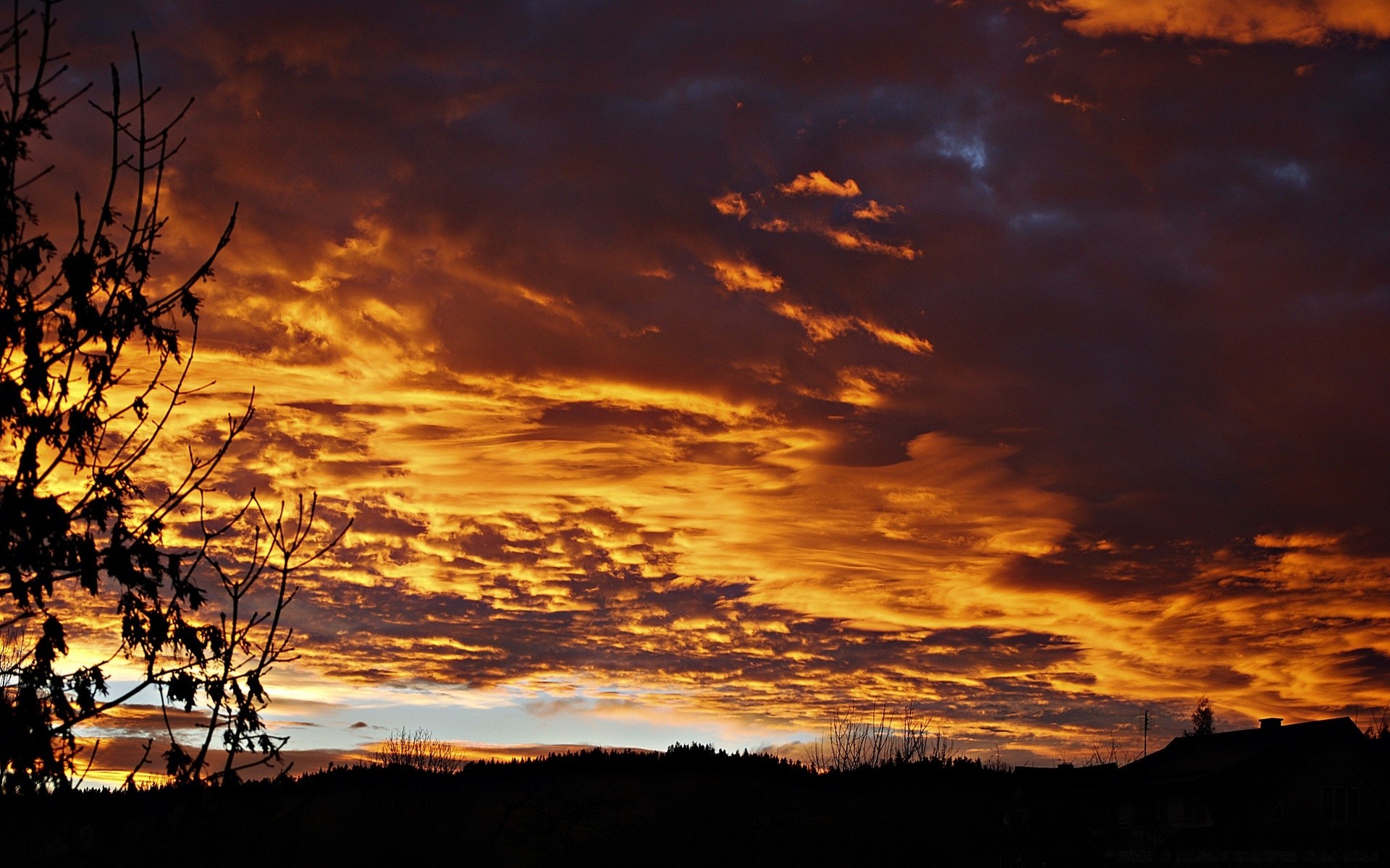 Incredibile bellezza del cielo arancione e gli alberi in piedi all'ombra