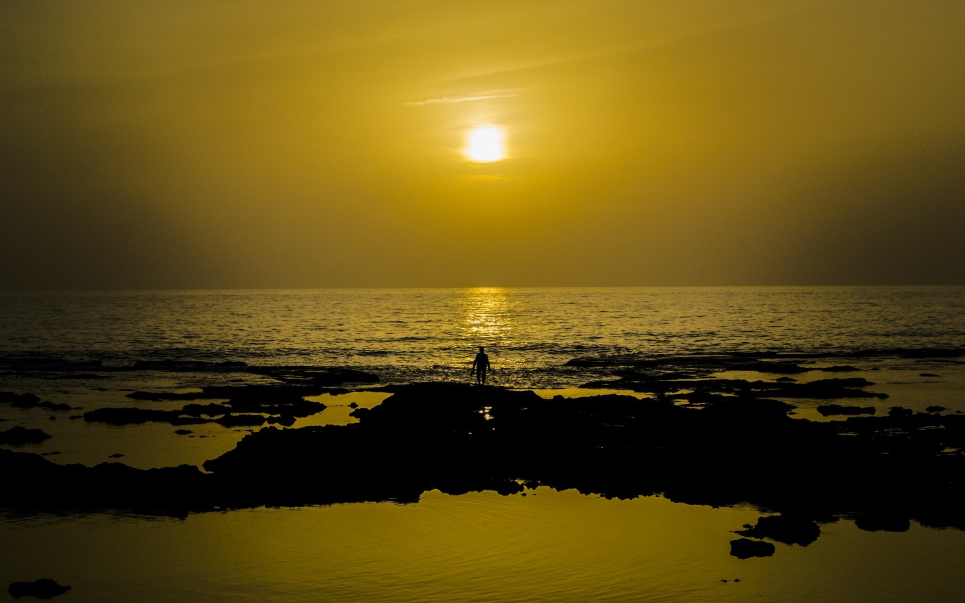 Incredibile bellezza del cielo arancione e gli alberi in piedi all'ombra