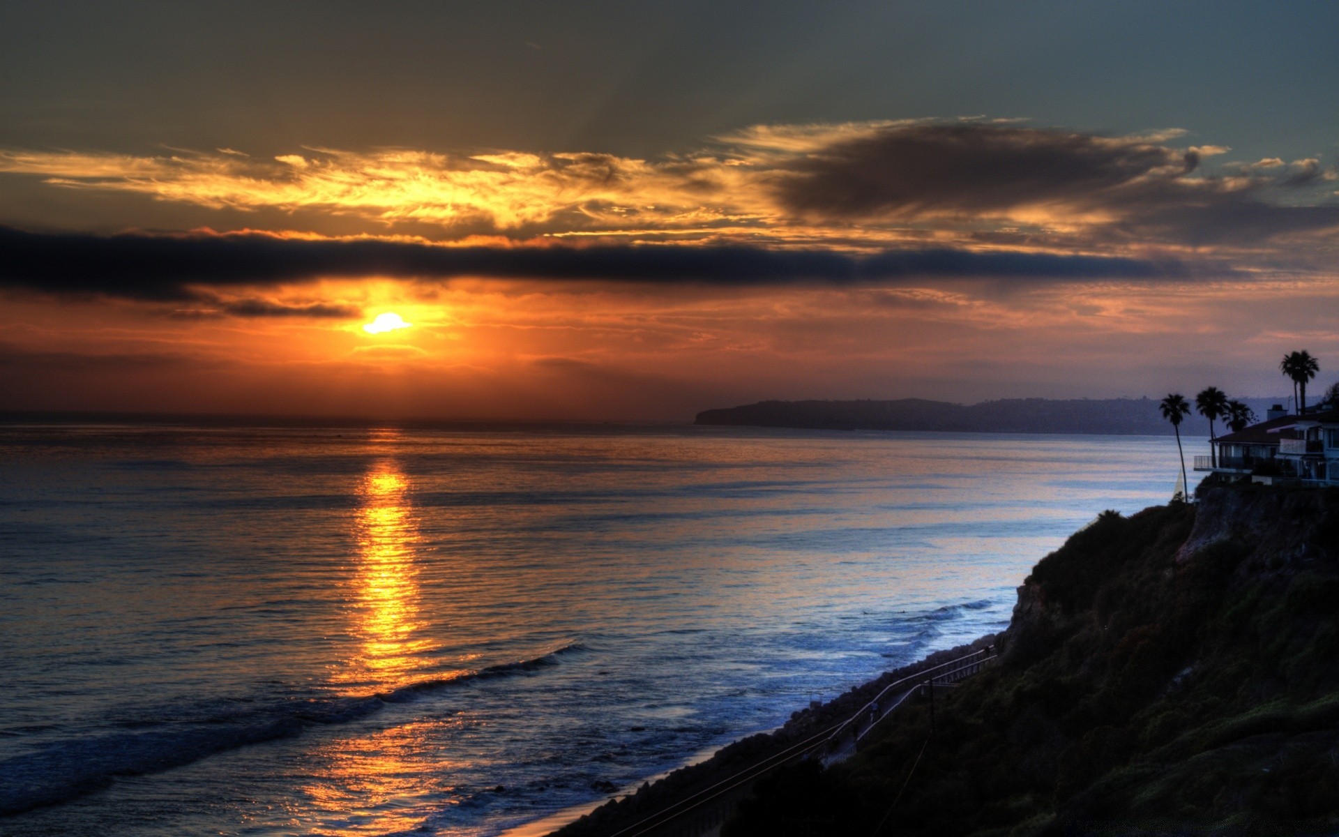 Paesaggio di sole tramonto sullo sfondo delle montagne