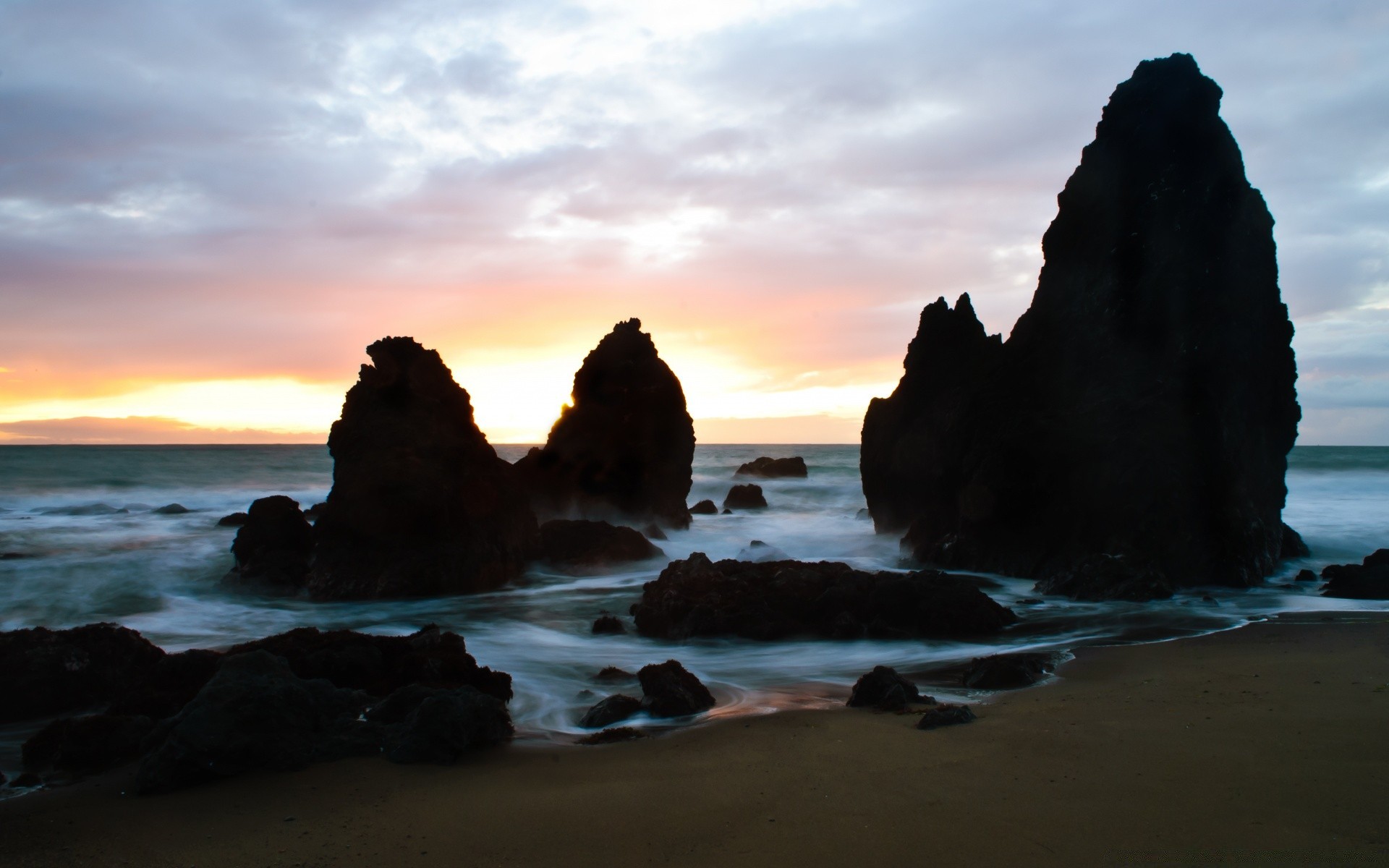 Mare al tramonto, spiaggia di sabbia