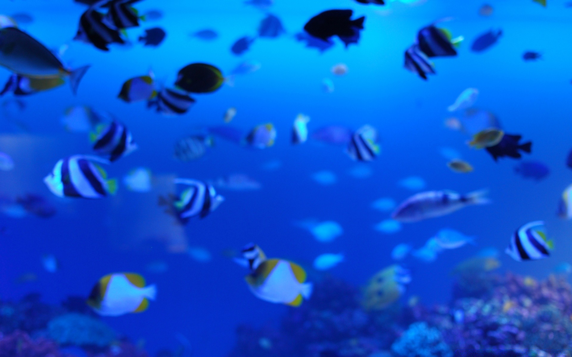 Molti pesci a strisce sott'acqua