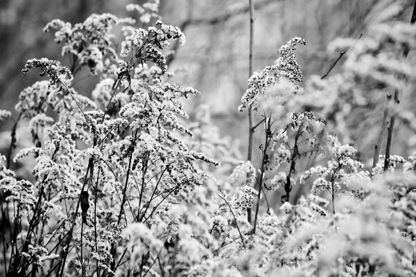 Fiori nella neve in una giornata gelida