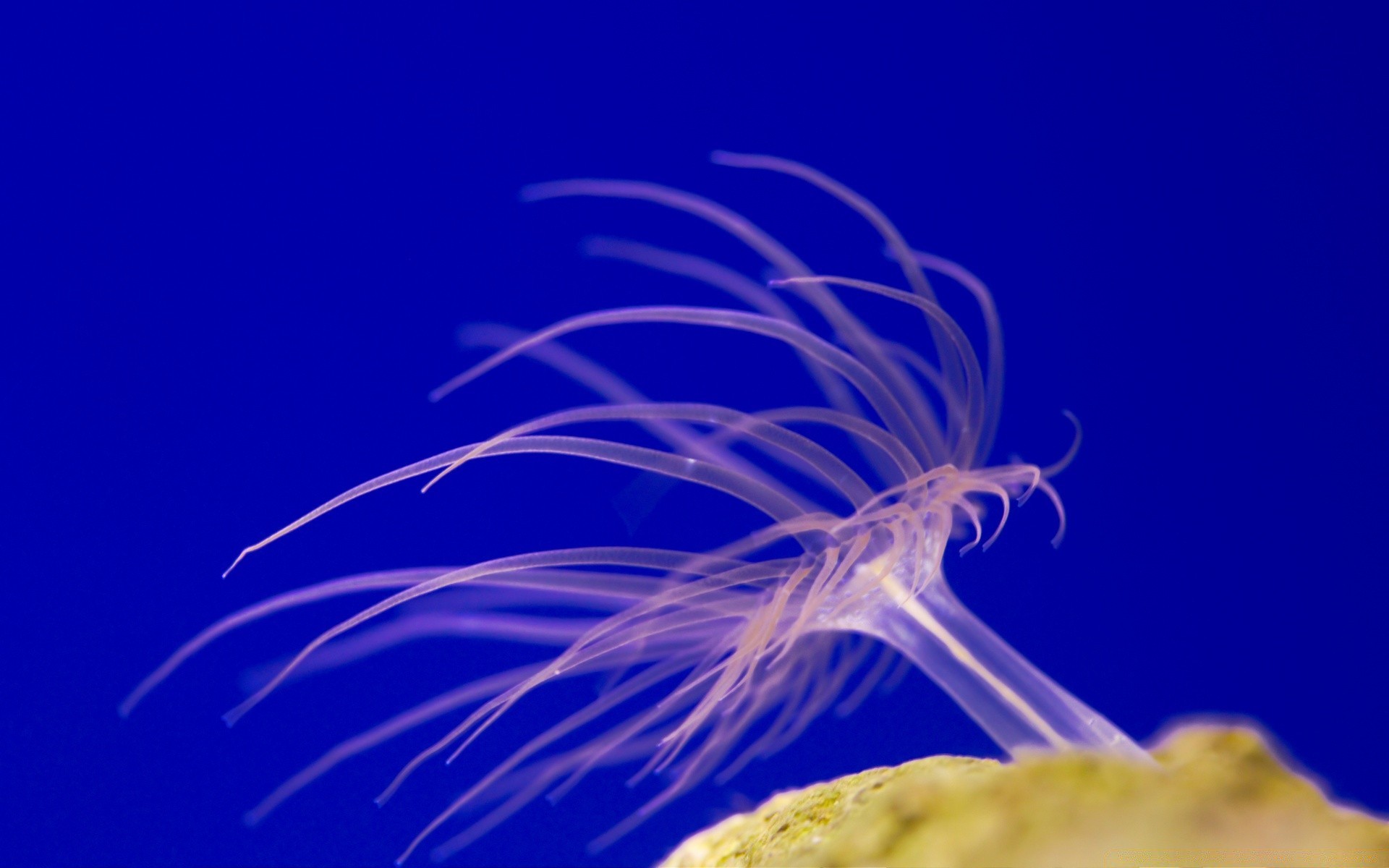 Medusa con tentacoli in via di sviluppo su sfondo blu