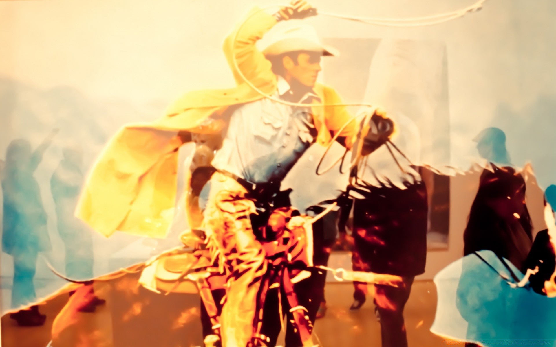 Cowboy a cavallo con lazo, enTourage