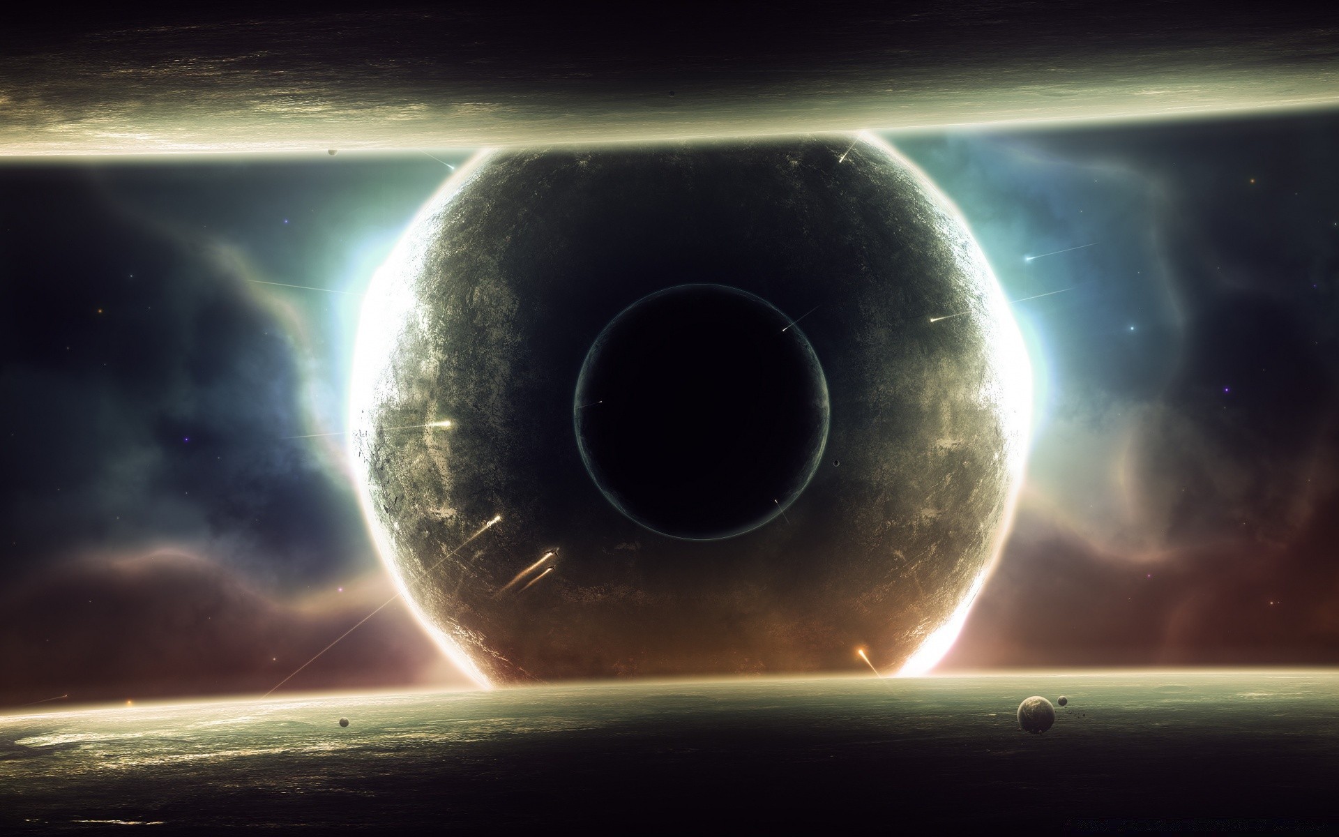 Il pianeta e la Gallattica. Paesaggio spaziale in rosso scuro