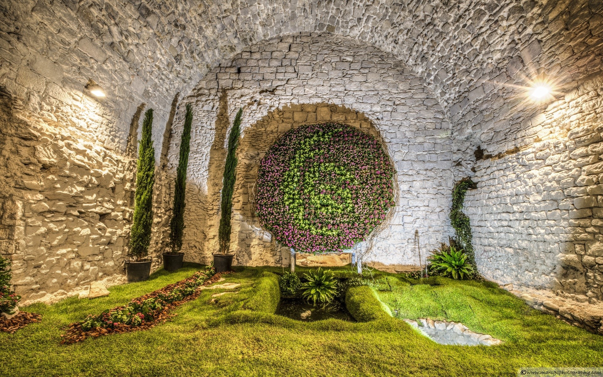 Interno naturale con pietra e verde