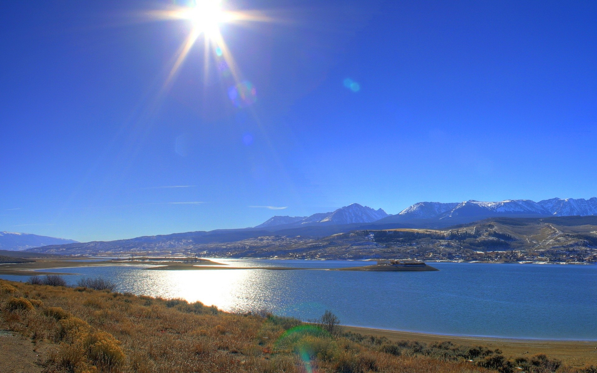 Spiaggia Resort con alberi tropicali sullo sfondo del tramonto