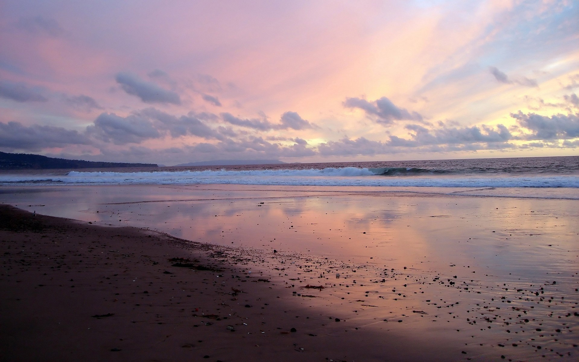 La spiaggia di sabbia solitaria incontra il tramontoLa spiaggia di sabbia solitaria incontra il tramonto
