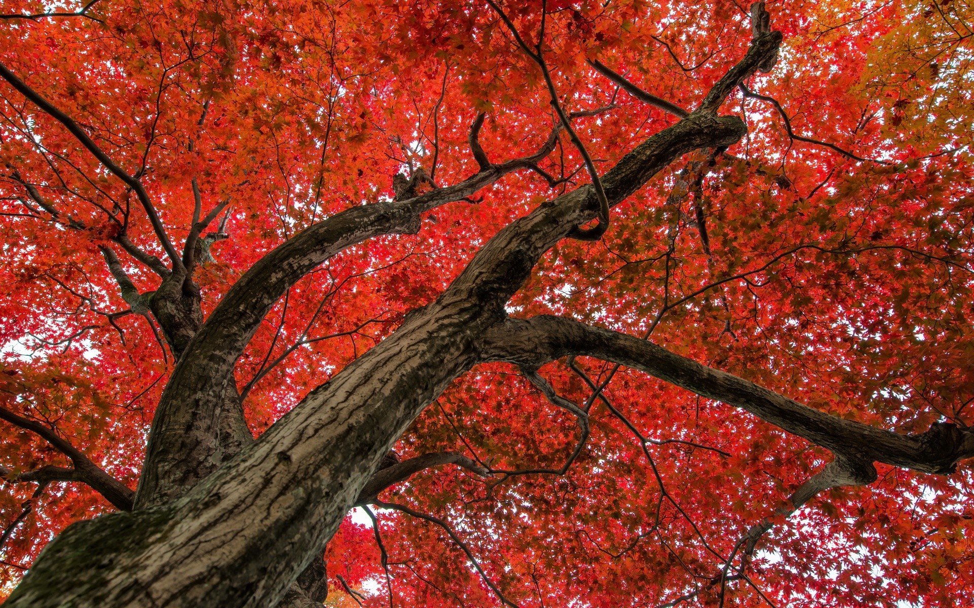 Mele rosse appese su rami attorcigliati secchi in uno sfondo grigio