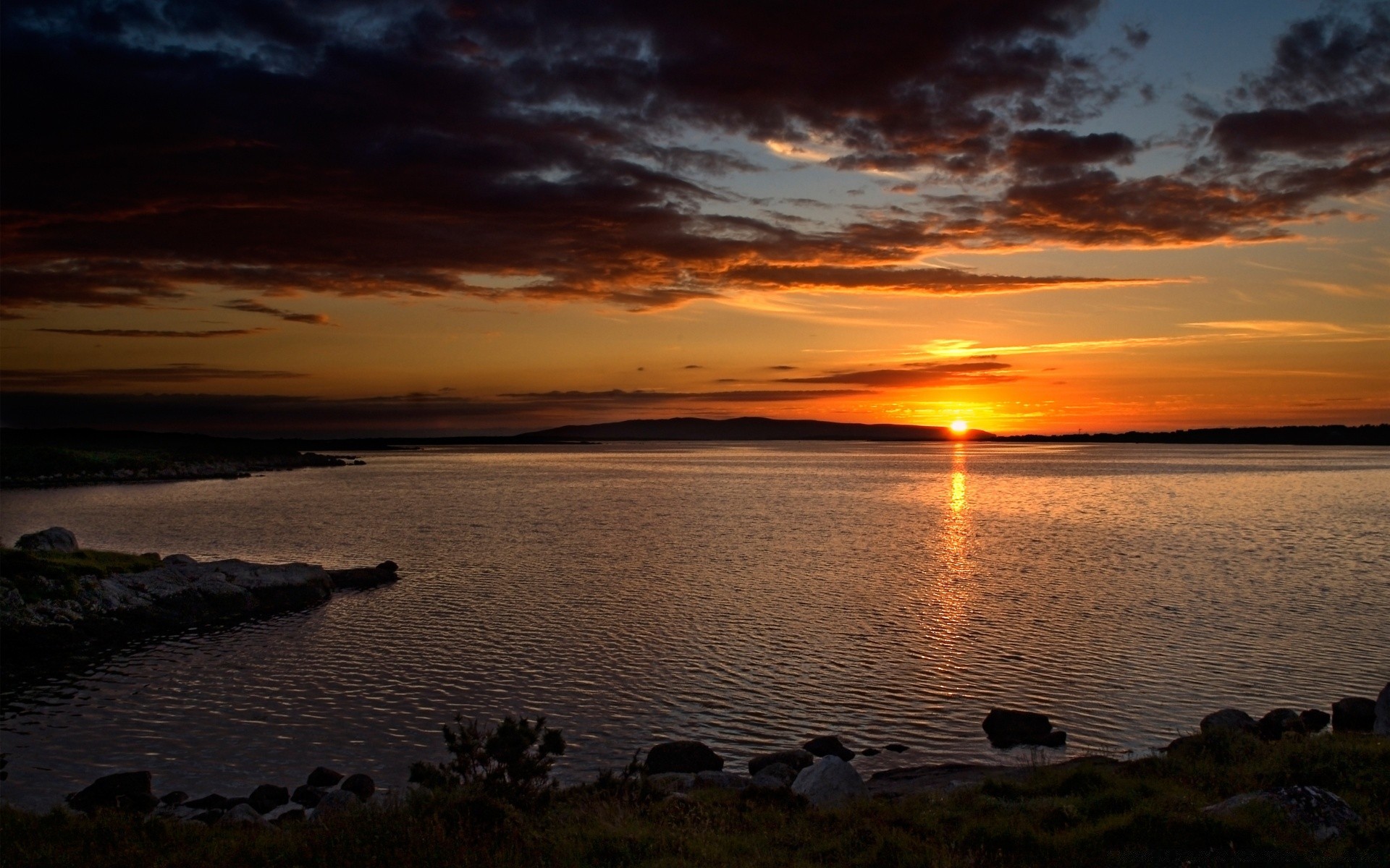 Tramonto sull'acqua. Riflesso del tramonto nell'acqua. Acque tranquille. Oscurato