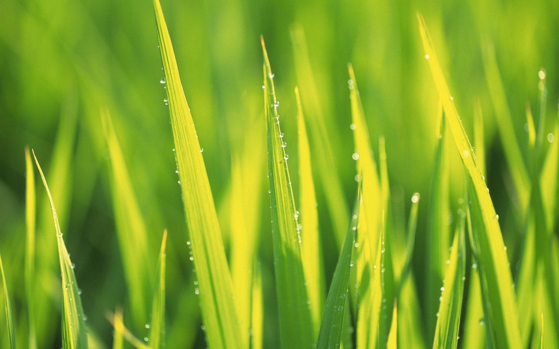 Gocce di rugiada sull'erba verde