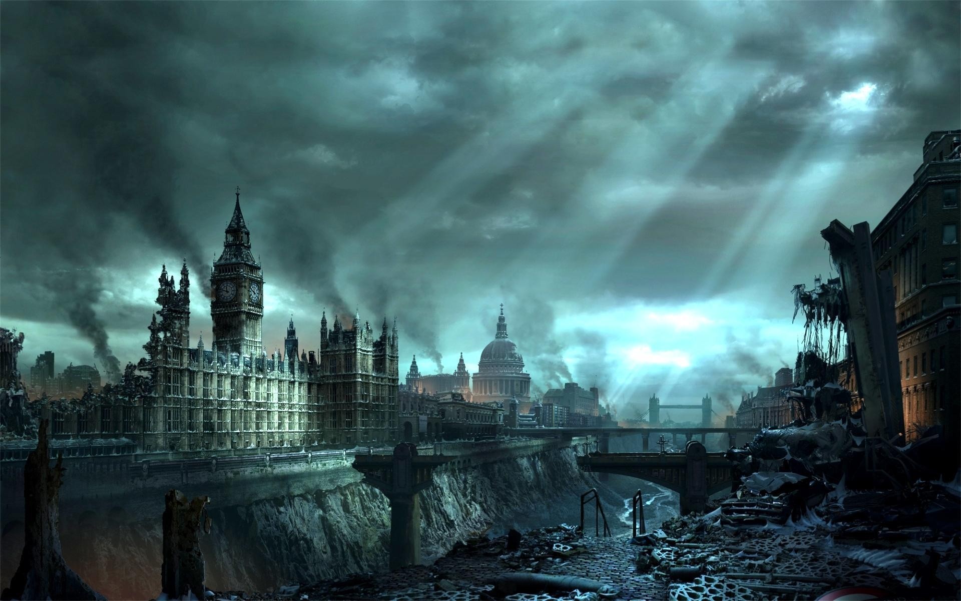 Regno Unito al tramonto del giorno dal mondo della fantascienza