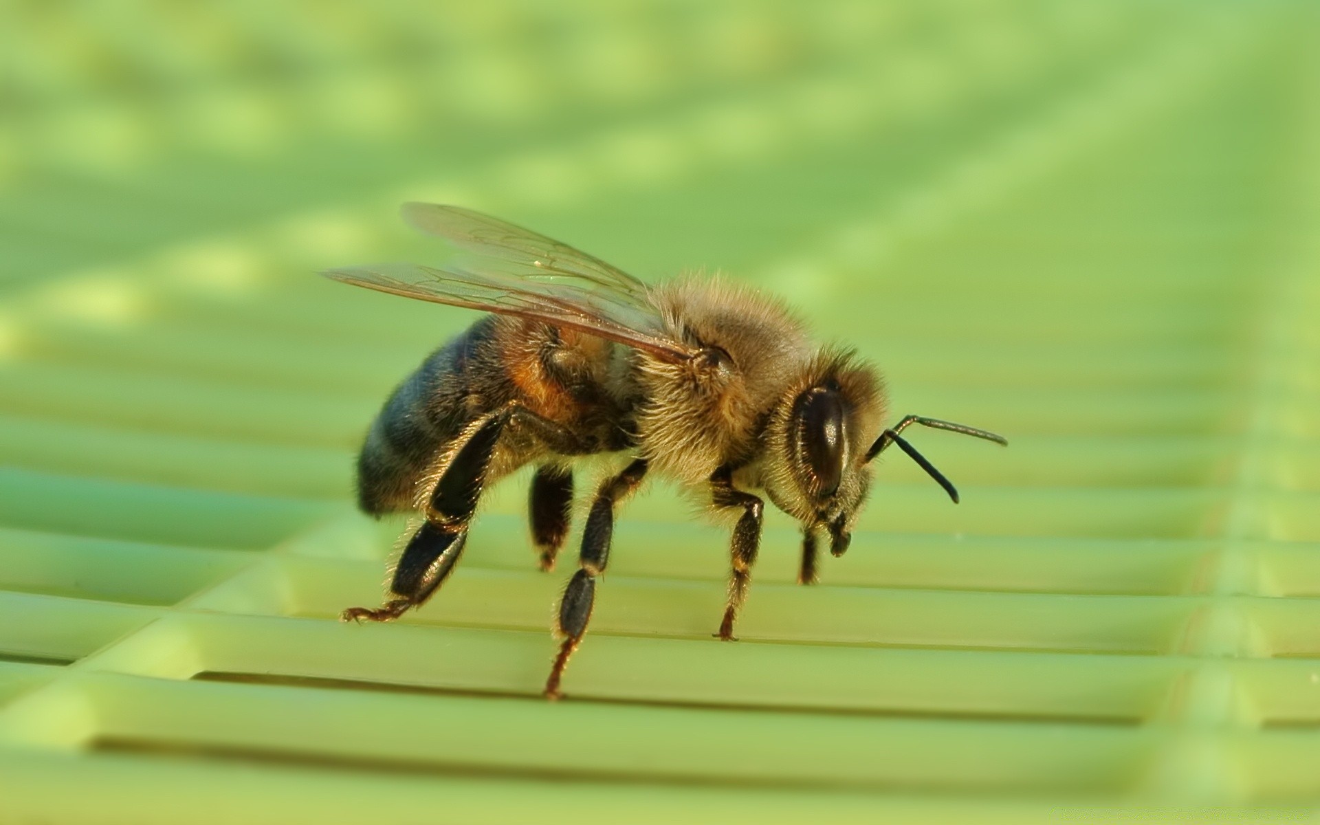 Ape accovacciata su una griglia verde
