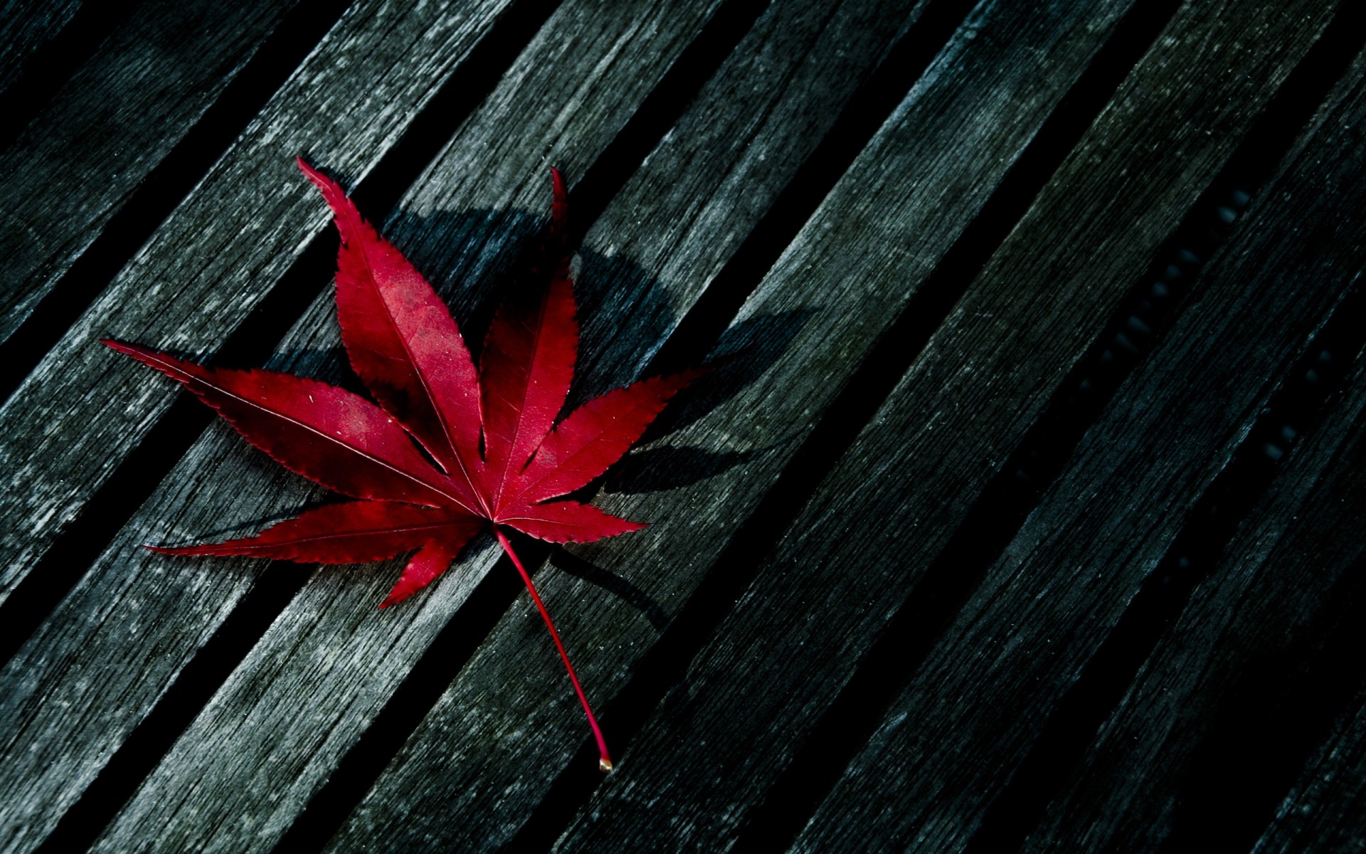 Una panchina di legno si trova nella foresta autunnale tra le foglie gialle cadute