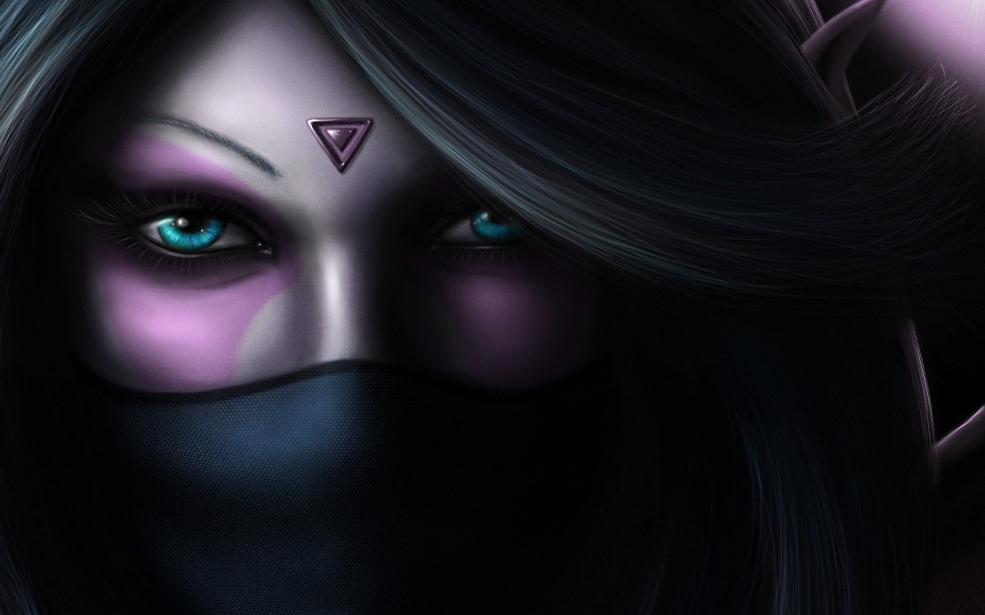 Anime ragazza in maschera nera e triangolo tra gli occhi