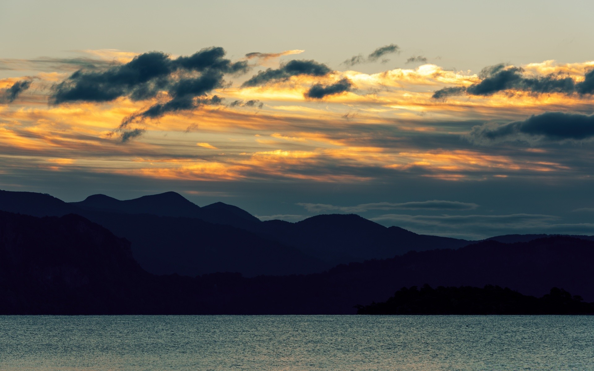 Fiori di ciliegio sullo sfondo delle Montagne Nebbiose serali
