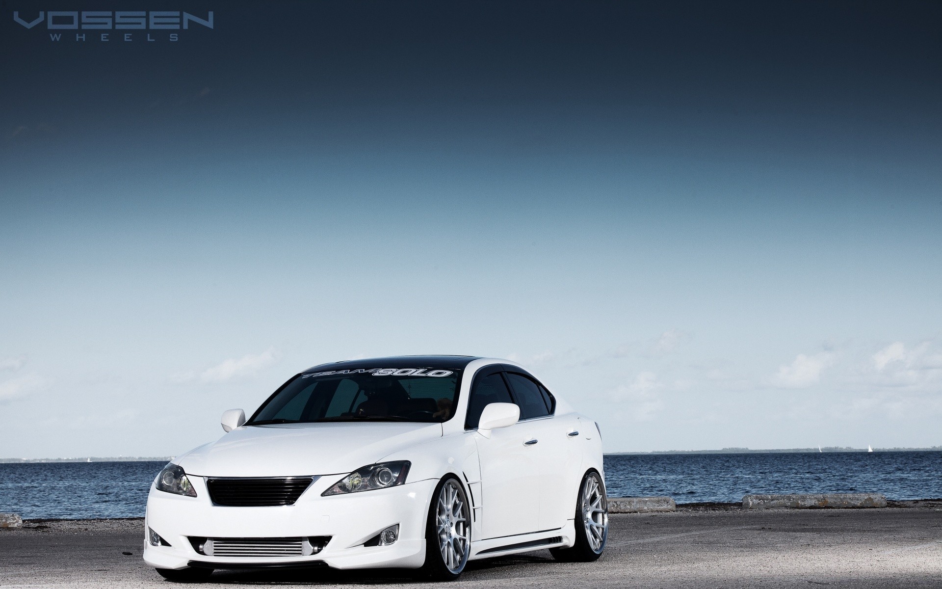 Auto Lexus bianca in riva al mare