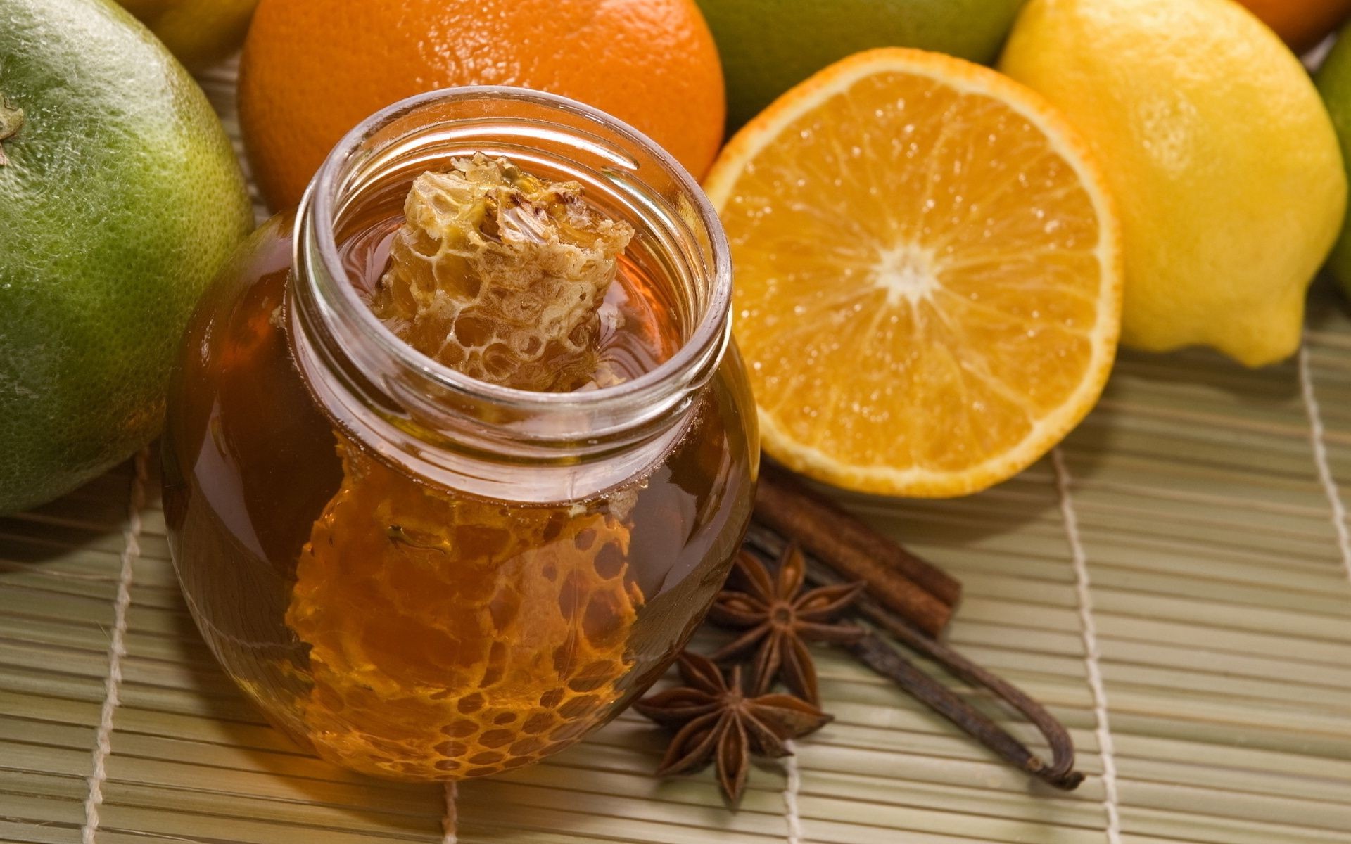 Bevande agli agrumi, miele e frutta