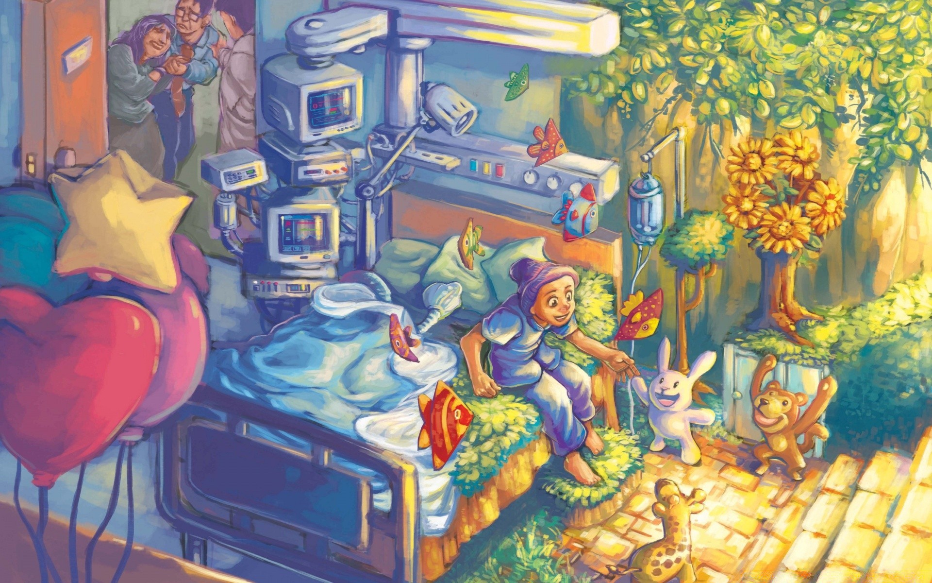 Logo Windows riflesso in un prato verde illuminato dai raggi del sole attraverso le nuvole