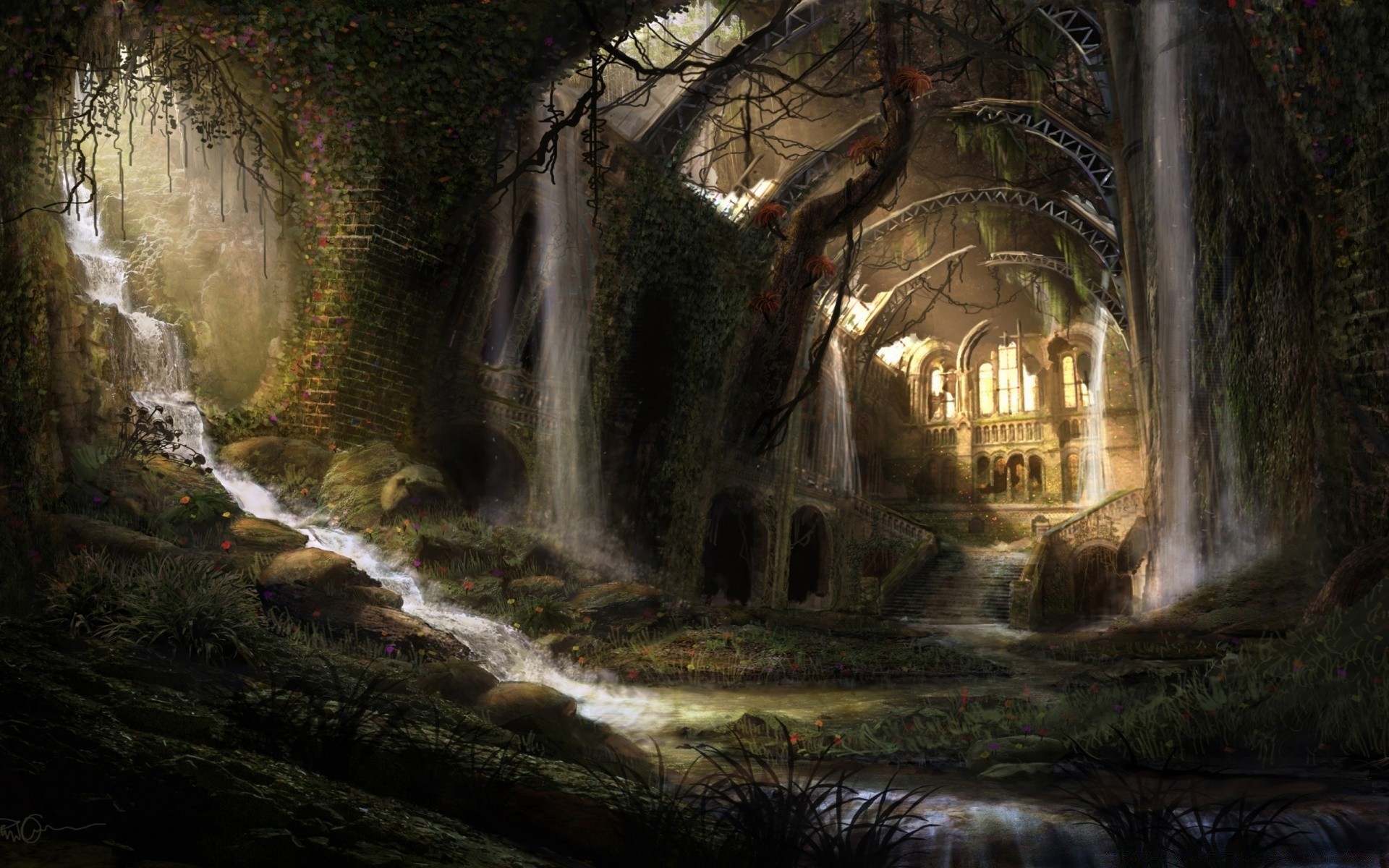 Una favolosa città di insetti con ponti ad arco fatti di erba