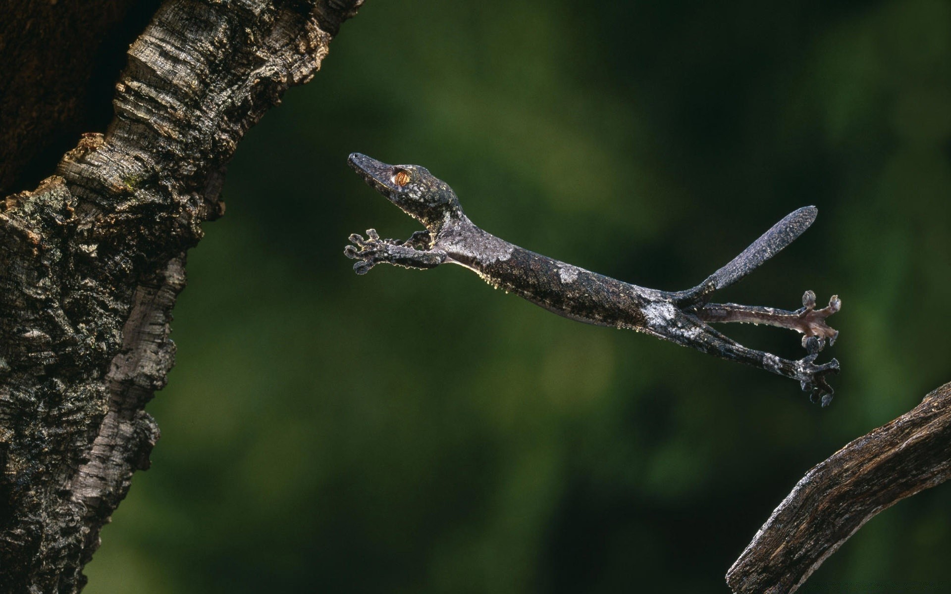 Volo del rettile da un albero all'altro