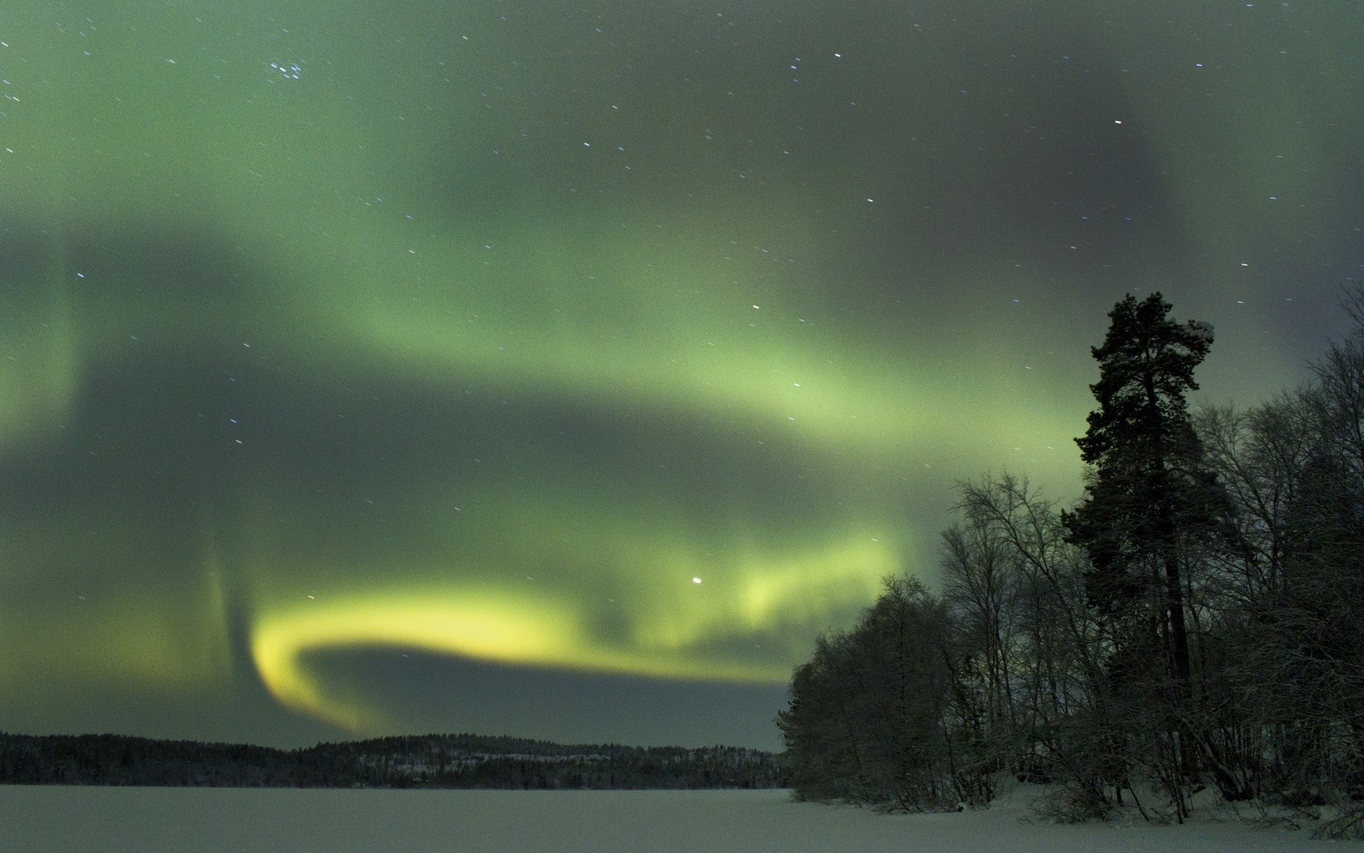 Paesaggio nebbioso nella foresta, albero in barlumi di luce