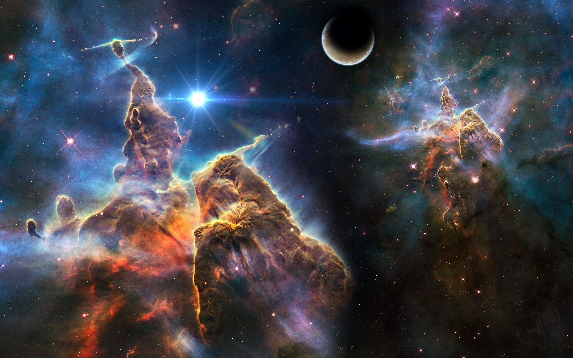 Ragazza del fumetto su una scopa che vola attraverso il cielo sotto la luna