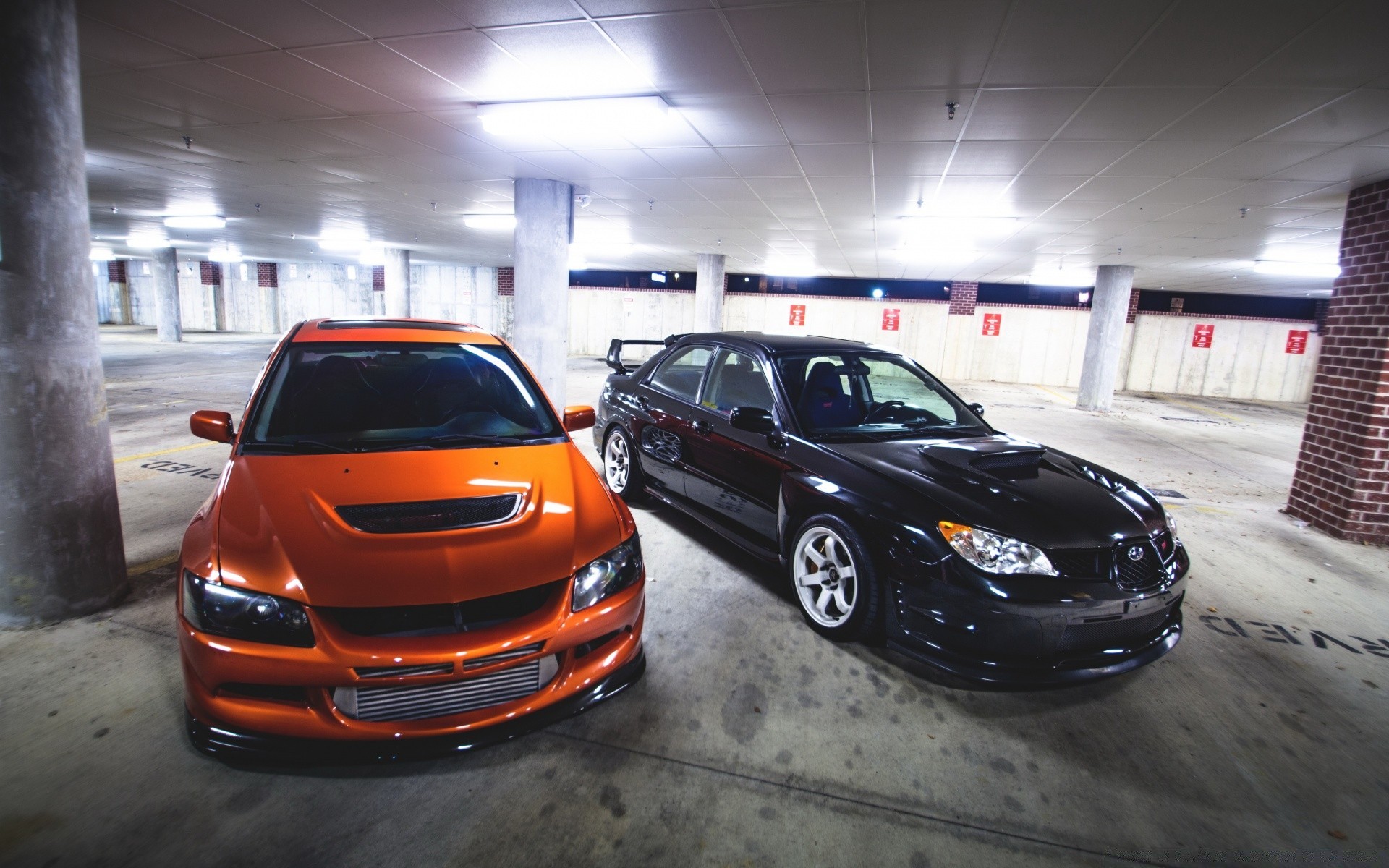 Foto di una bella auto rossa sullo sfondo del cielo al tramonto