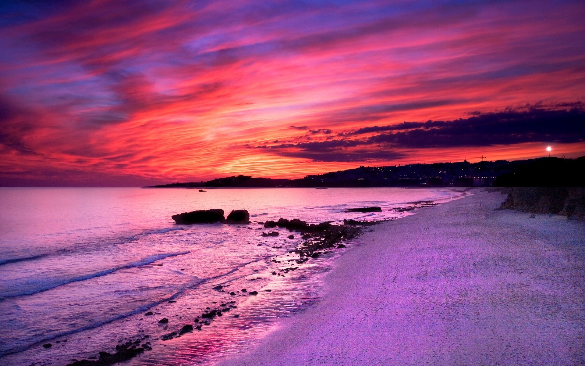 L'oceano bagna una spiaggia rocciosa, un faro visibile in lontananzaL'oceano bagna una spiaggia rocciosa, un faro visibile in lontananza