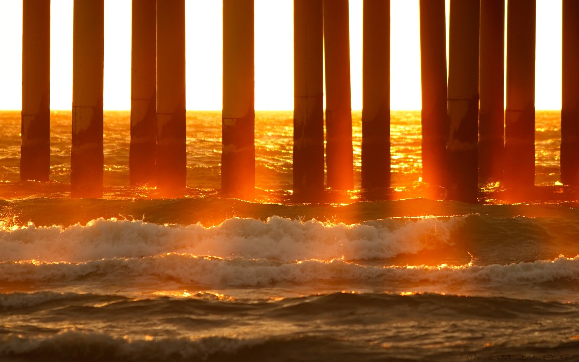 Un tramonto di rame incredibilmente incantevole sul mare nella calma