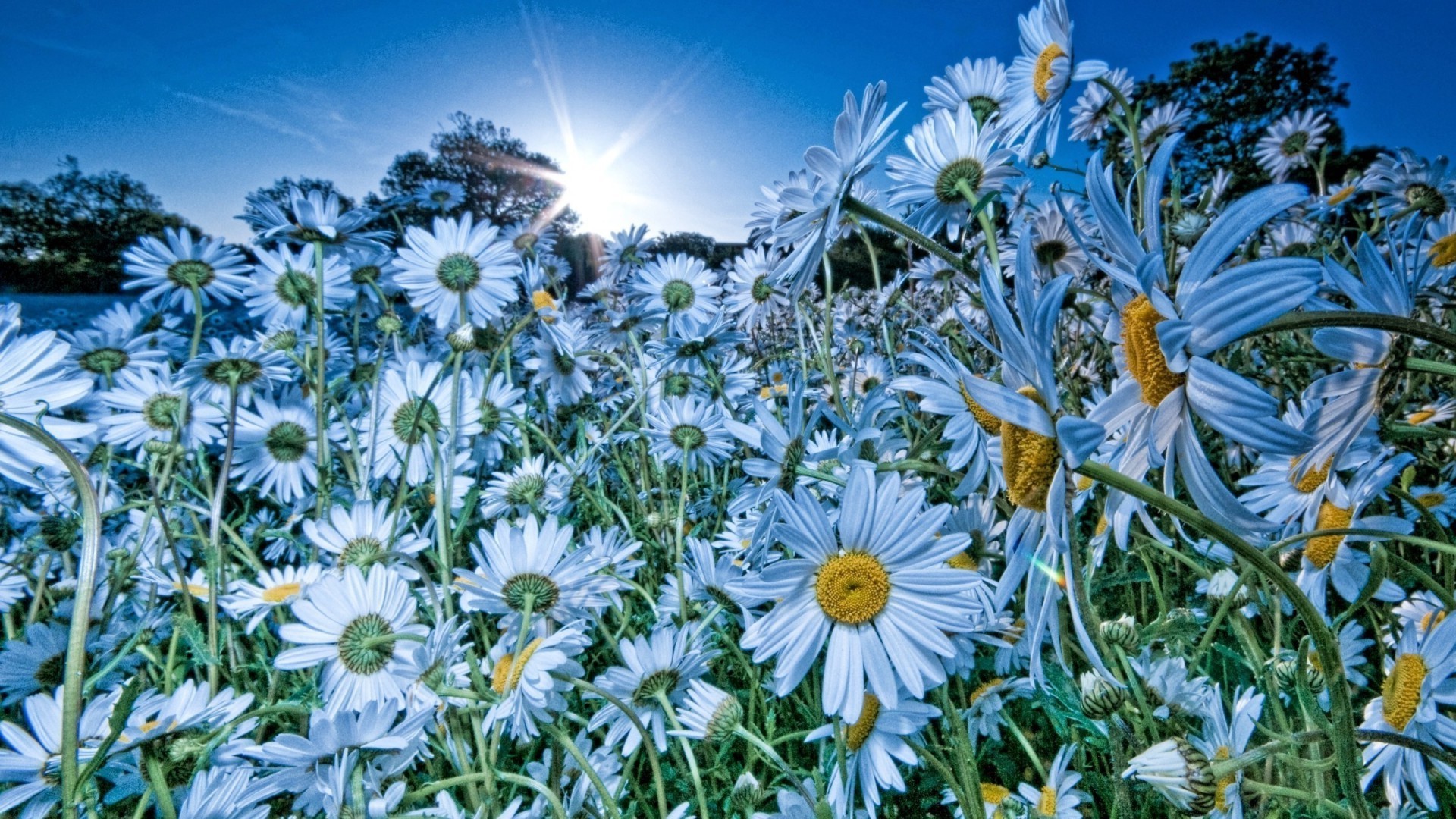 Campo di margherite bianche luminose