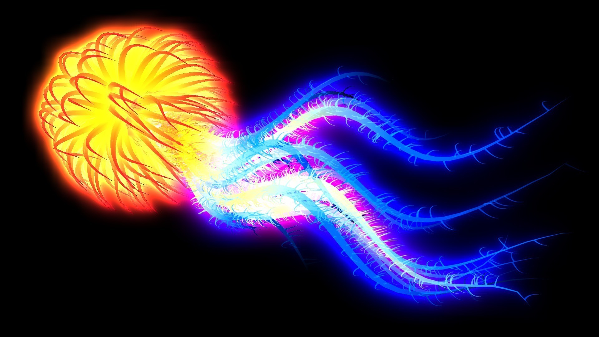 Medusa con tentacoli in via di sviluppo su sfondo blu