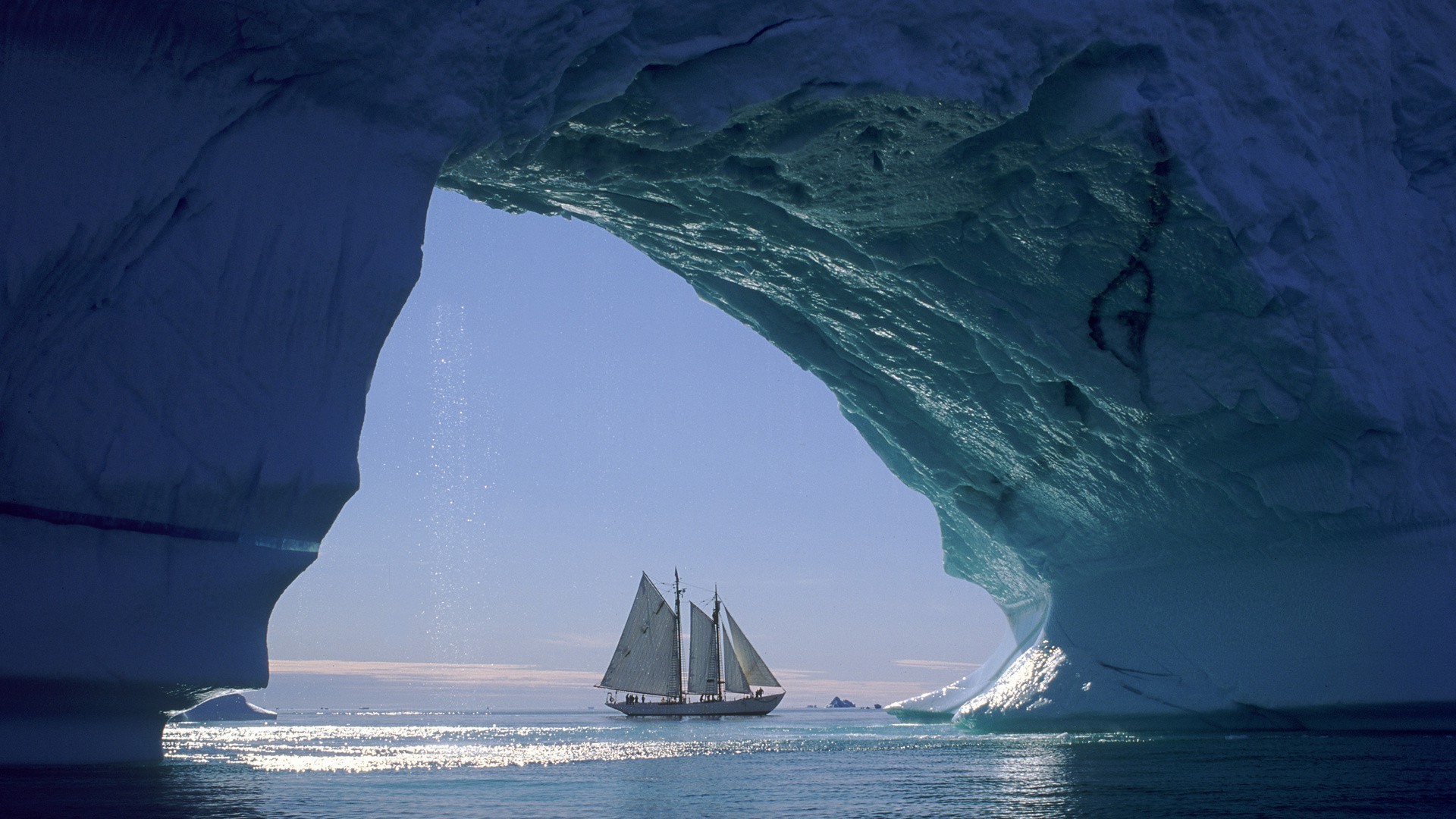 Barca a vela sotto un iceberg. Misteri dell'oceano