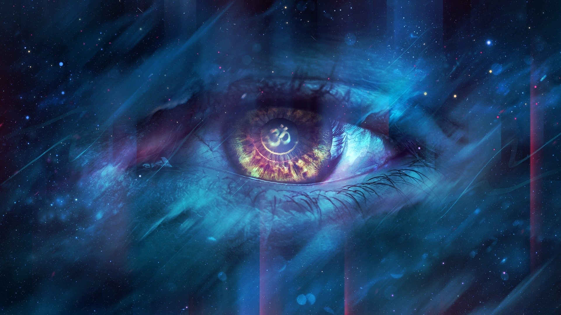 Sfondo cosmico con occhio femminile