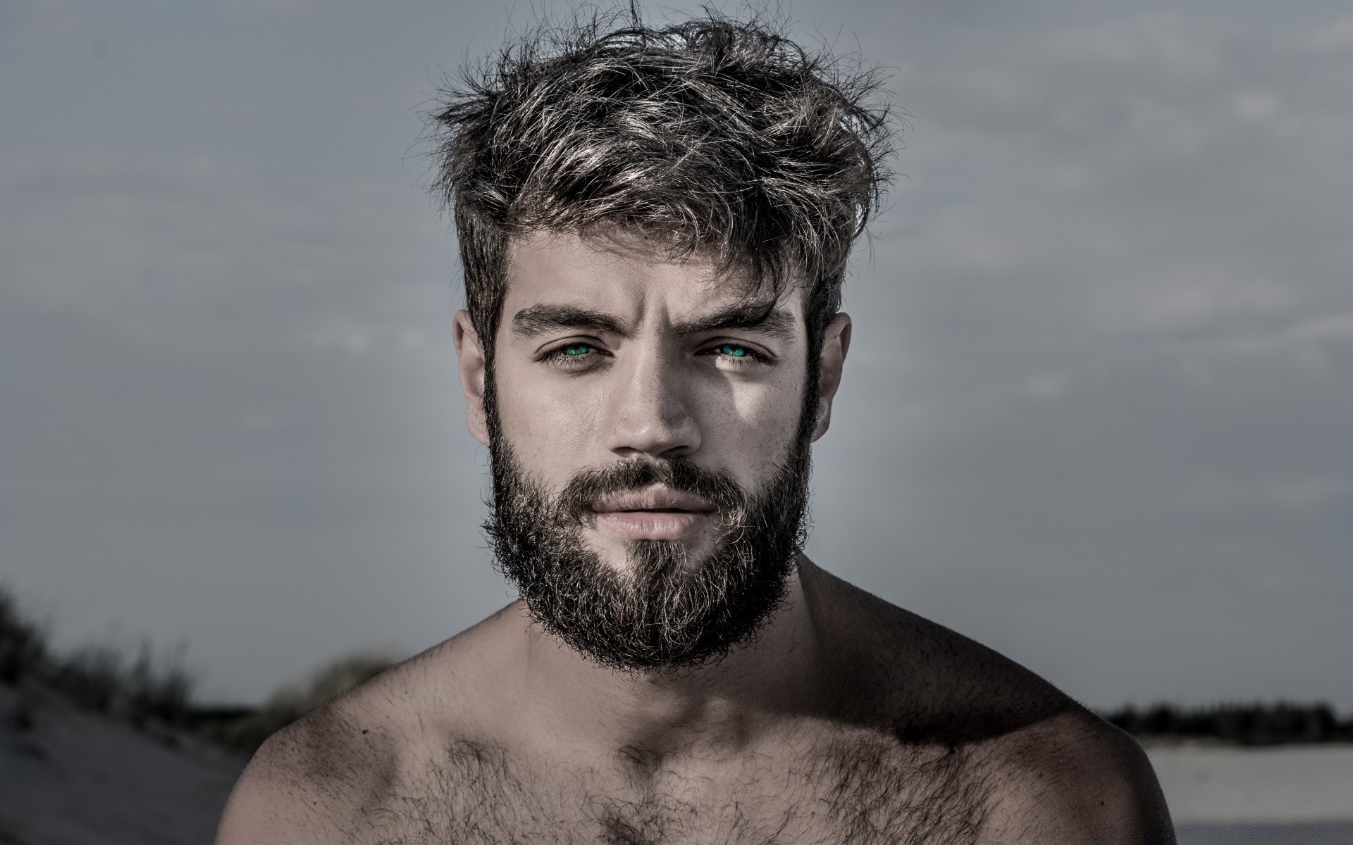 Uomo barbuto con i capelli folti