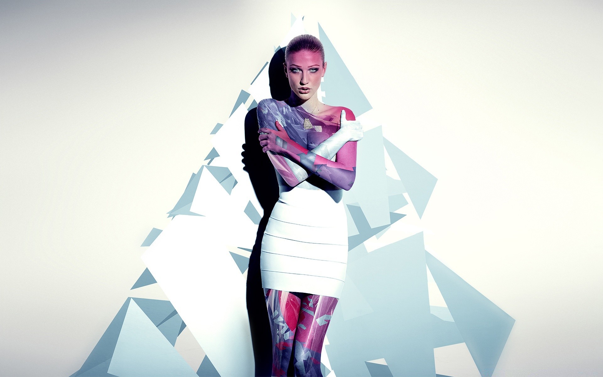 Modello in abito bianco in posa