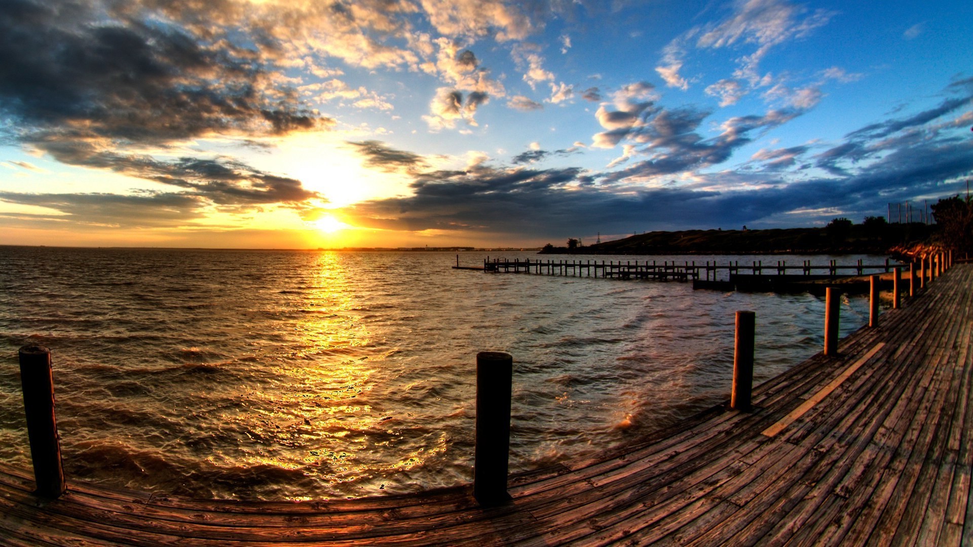 Caffè sul lungomare alla luce di lanterne cinesi e canoe al molo