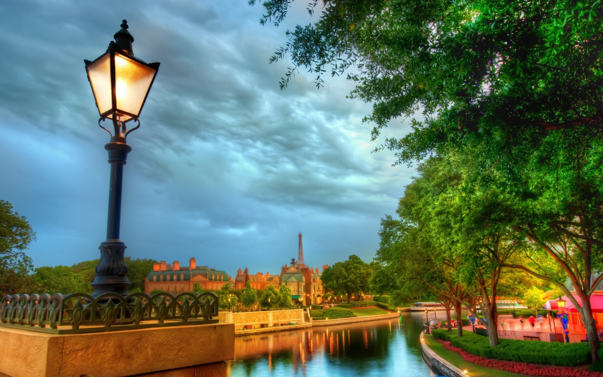 Riflessione di edifici in acqua durante il tramontoRiflessione di edifici in acqua durante il tramonto