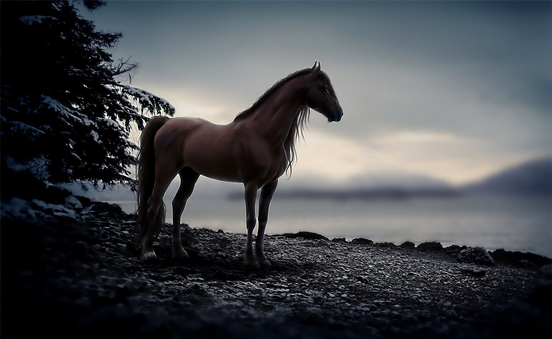 Il cavallo aggraziato è arrivato sulla riva del Lago