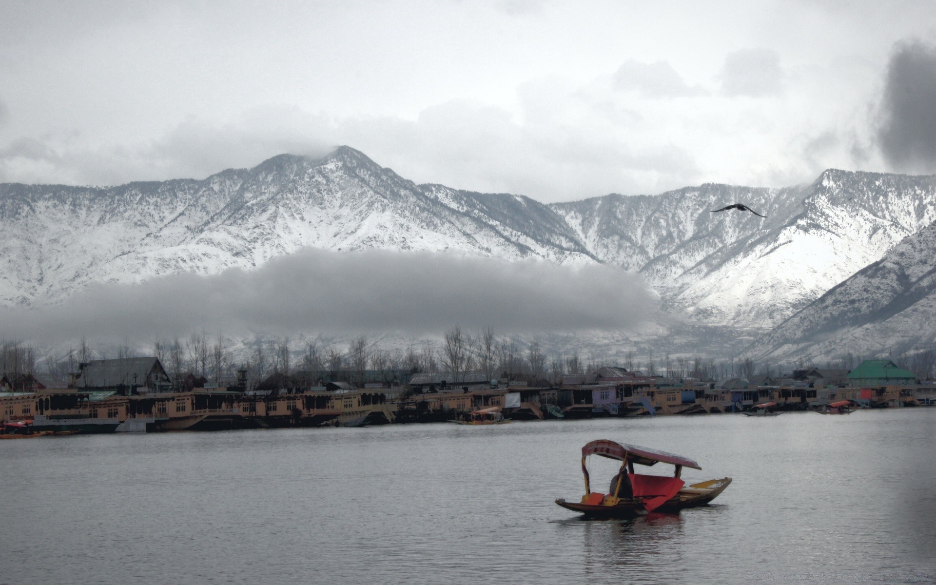 Tramonto sullo sfondo di montagne di acqua e foresta