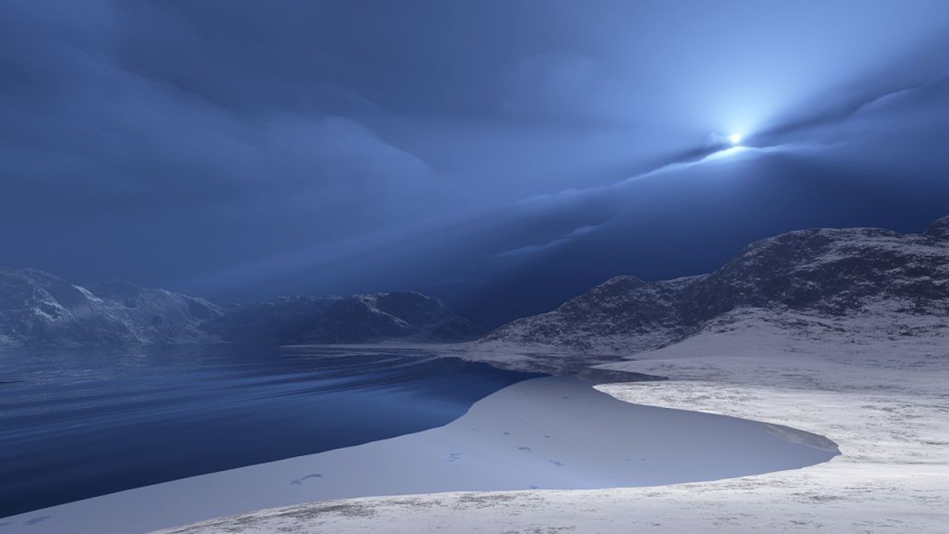 Montagne innevate alla luce del crepuscolo