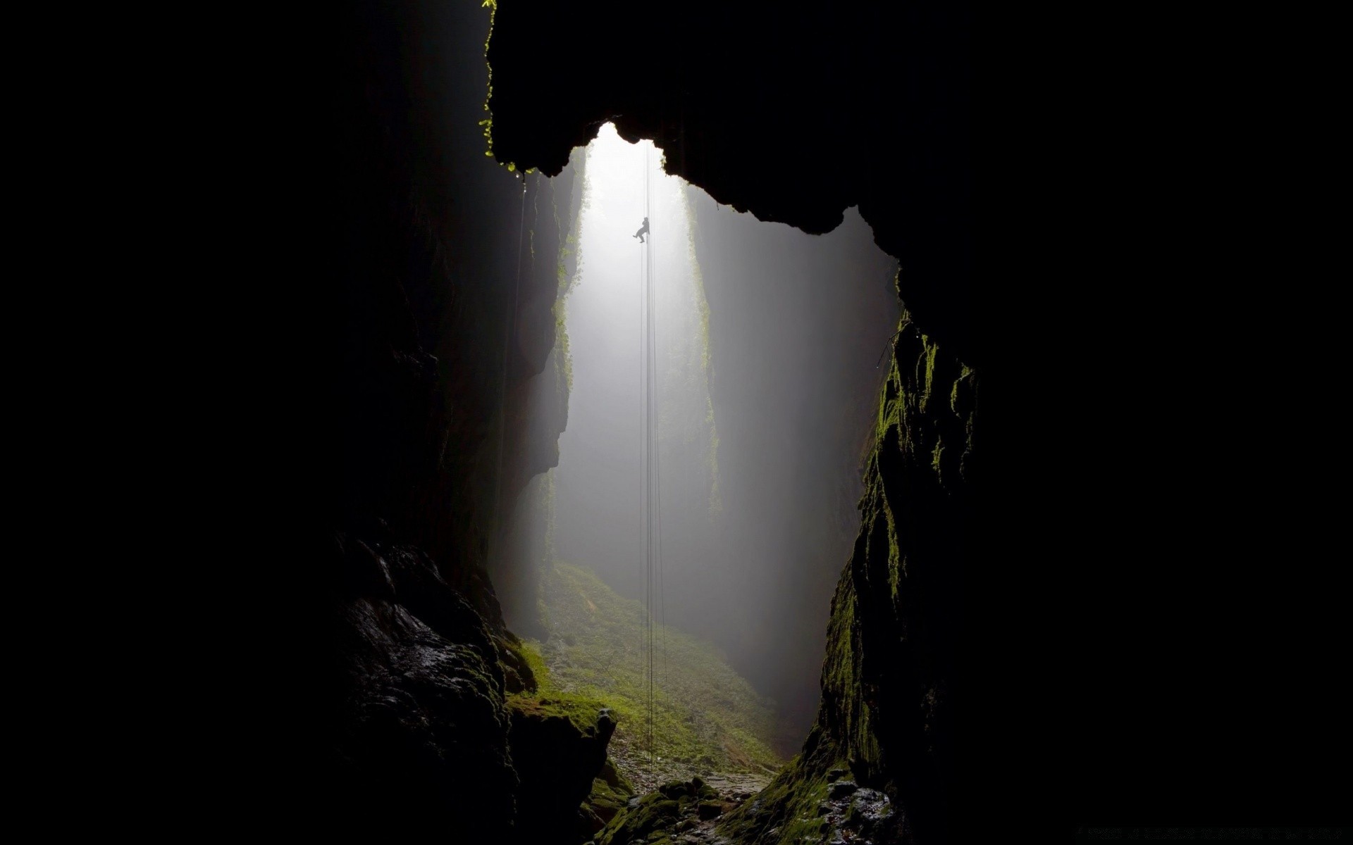 Nebbia misteriosa tra rocce e montagne