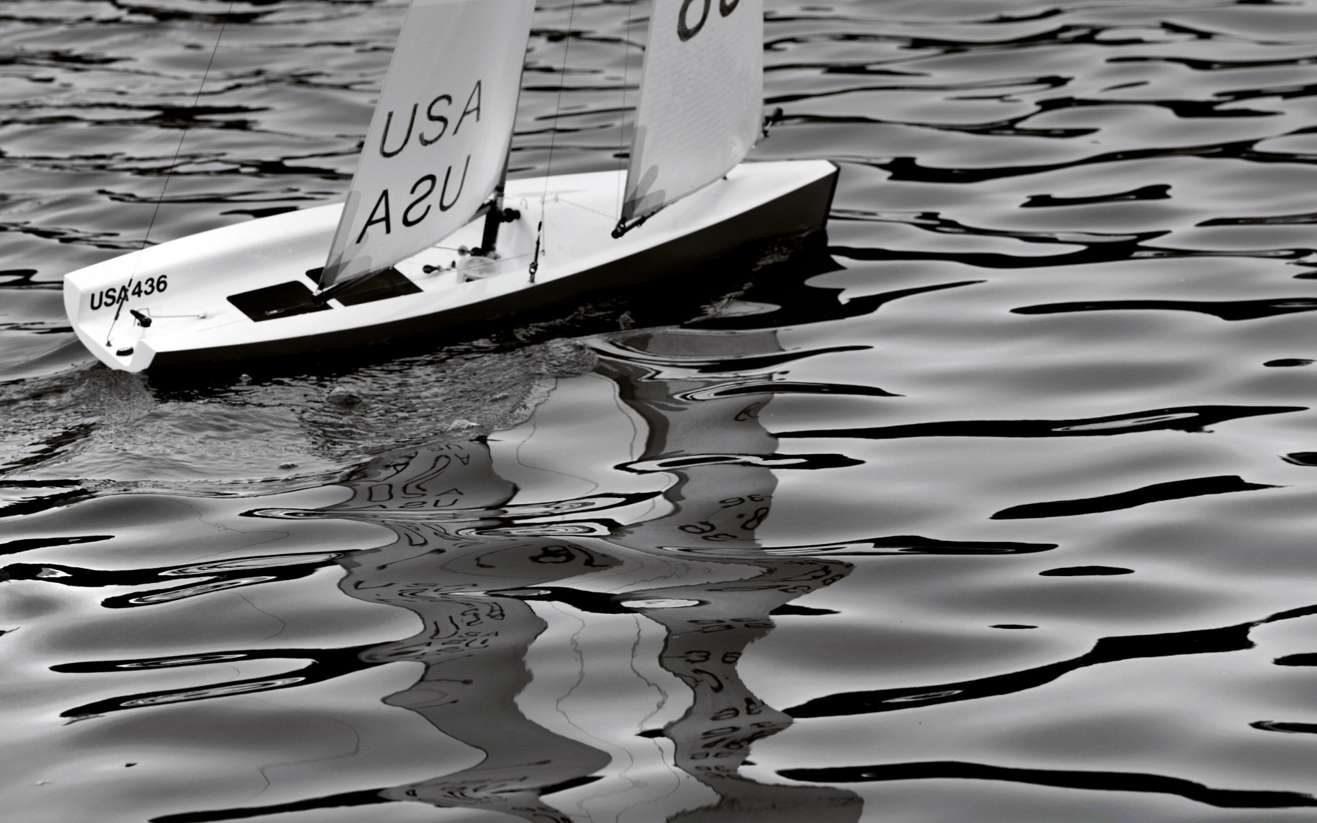 Yacht sullo sfondo di un meraviglioso mare e cielo blu-blu