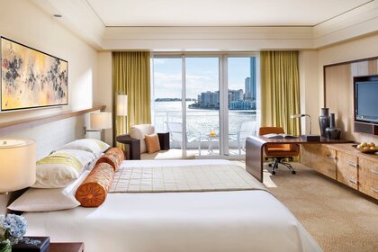 Camera da letto con finestre che si affacciano sul fiume