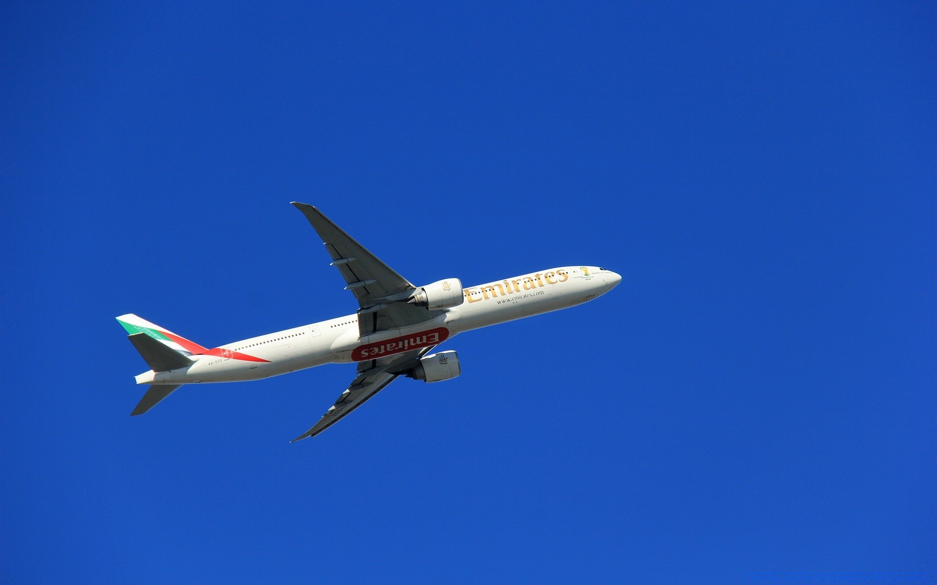 Aereo di linea bianco come la neve nel cielo blu brillante